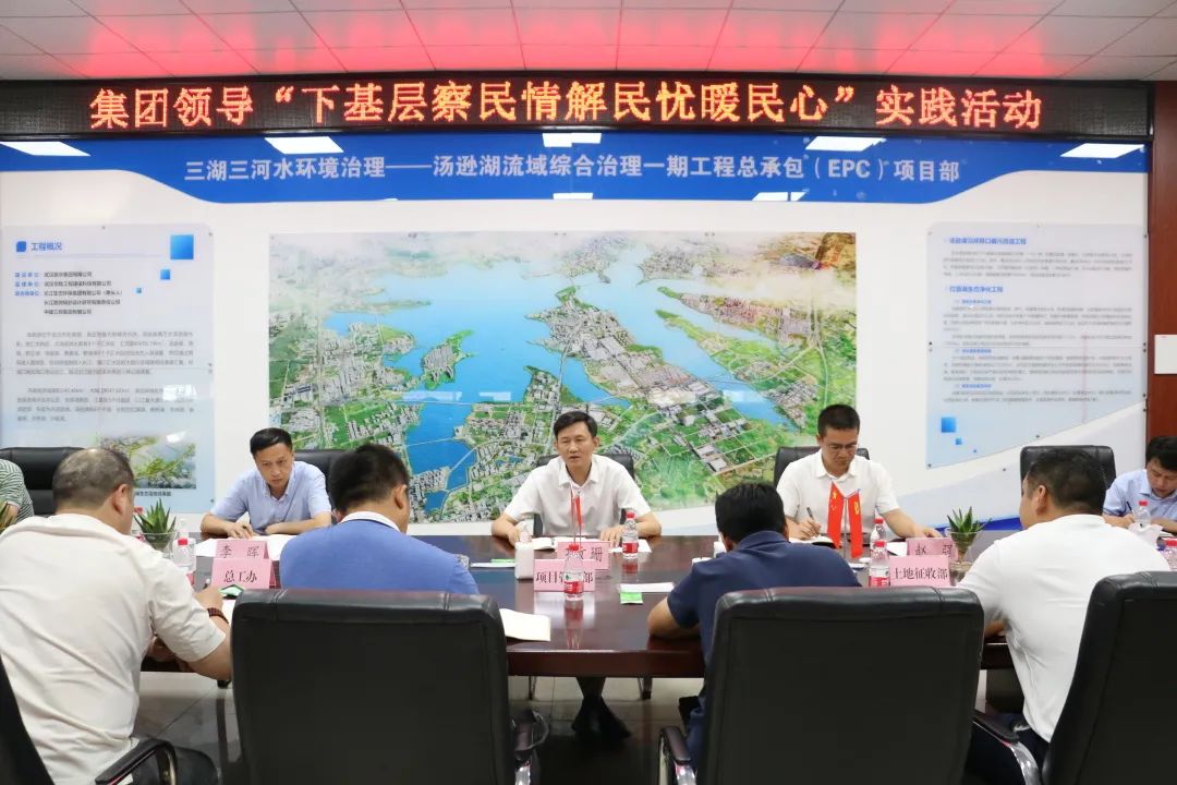 ? ?根據(jù)省市委、生態(tài)集團(tuán)黨委關(guān)于開展“下基層察民情解民憂暖民心”實(shí)踐活動(dòng)部署安排,6月21日下午,武漢生態(tài)投資集團(tuán)黨委委員、副總經(jīng)理,碧水集團(tuán)黨委書記、董事長(zhǎng)王文珊深入湯遜湖流域綜合治理二期項(xiàng)目現(xiàn)場(chǎng)進(jìn)行調(diào)研,了解對(duì)項(xiàng)目前期進(jìn)度及困難,對(duì)下一階段重點(diǎn)工作進(jìn)行指導(dǎo)部署。集團(tuán)領(lǐng)導(dǎo)趙強(qiáng)、李暉、唐小軍、劉剛陪同調(diào)研。