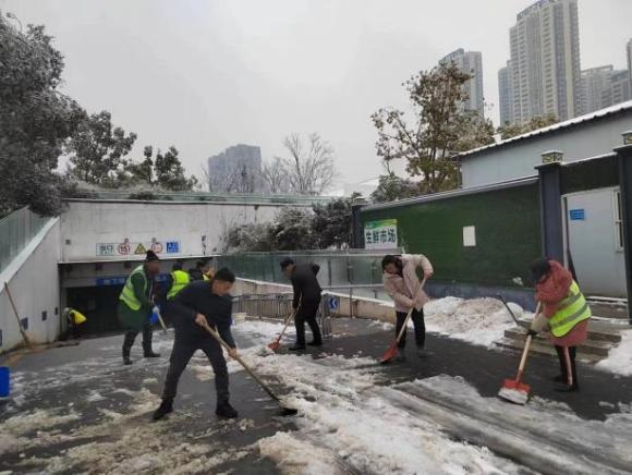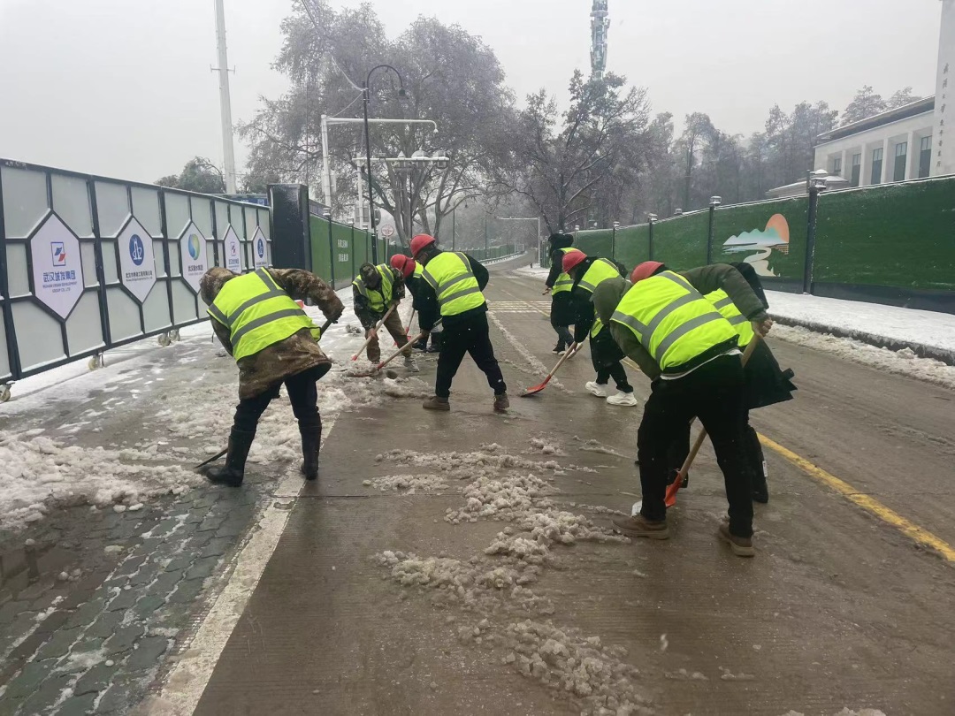 近日,受強冷空氣影響,武漢迎來大范圍寒潮和低溫雨雪冰凍天氣,給群眾出行和生產生活帶來不利影響。為深入貫徹落實習近平總書記關于低溫雨雪冰凍災害防范應對工作的重要指示精神,認真落實黨中央決策部署和省委、市委及城發集團工作要求,在應對低溫雨雪冰凍天氣中,充分發揮基層黨組織戰斗堡壘作用和廣大黨員先鋒模范作用,碧水集團干部職工以雪為令,迅速啟動應急預案,從機關到項目建設運維一線,全體干部職工頂風冒雪,集中力量除冰雪,保安全、保運轉、保生產,以實際行動踐行初心、擔當使命。